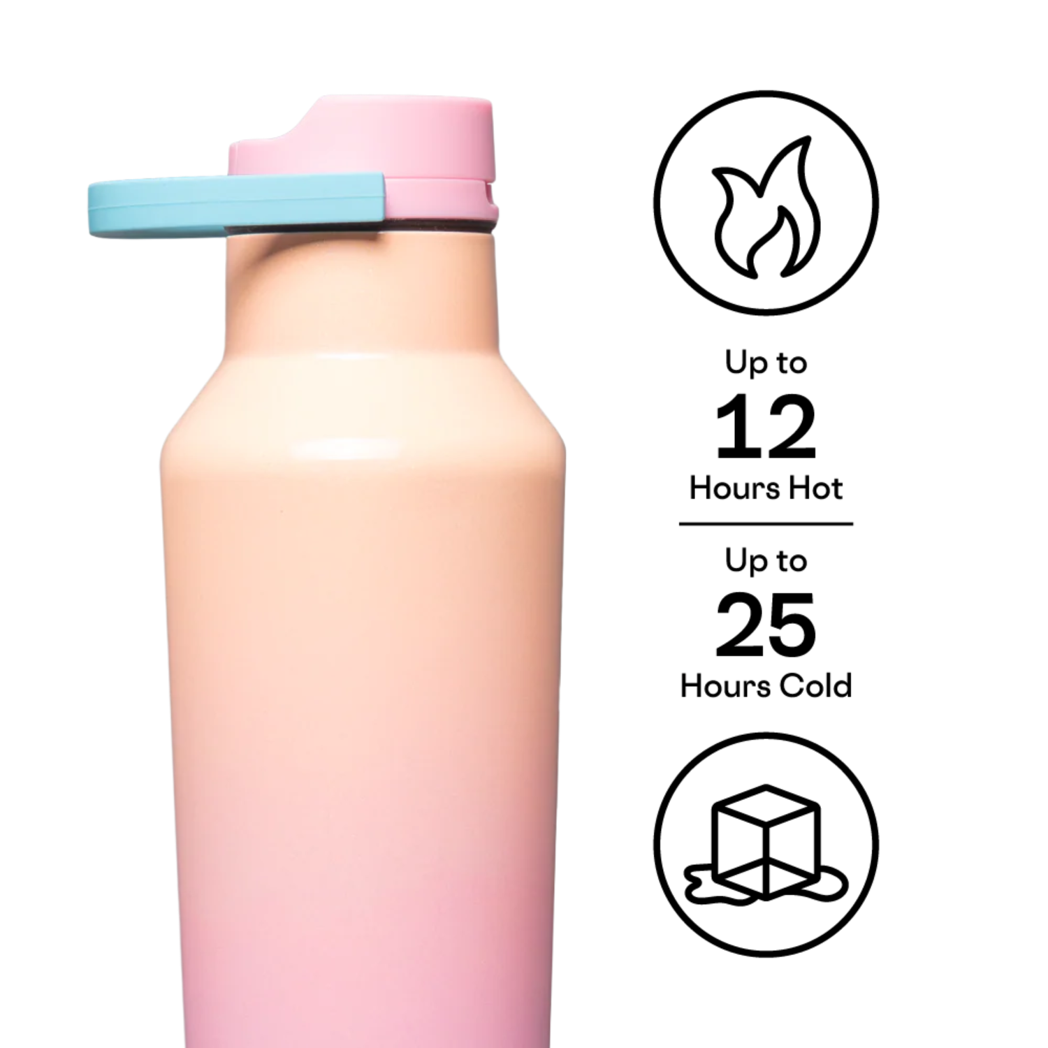 The Corkcicle Insulated Sport Bottle keeps drinks cold for up to 25 hours or hot for 12 hours. Featuring a durable pastel gradient finish, leakproof Quick Sip Sport Lid, and folding handle, it’s perfect for workouts, the office, or everyday hydration.